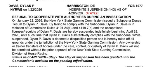 Harness Racing / Re: Meadowlands discontinues Pick 8« Last post by SAW on Today at 05:05:32 PM »Saturday (April 18) night’s $1 PK 8 was hit by three superb players for $21,417.50, but the bet, which was sponsored by Peter Kleinhans, has now been discontinued. I see once a Liar always a Liar or as I like to say "A Lying Leopard Can't Change His Spots" Actual Quote “We appreciate Peter’s generosity during the time we had the $1 PK 8. It created a great amount of excitement, especially when the carryover exceeded six figures,” said track Chief Operating Officer and General Manager Jason Settlemoir of Kleinhans, who seeded the wager four times with $50,000 of his own money. “Now, moving forward, we are out to show that at The Meadowlands, we are never afraid to try something different to keep things fresh for our fans.” A 2nd late Pick-5 has been added. Here is the new lineup of wagers that will be offered every racing night. They all offer a low 15 percent takeout: Races 1-5: 20-cent Early Pick-5 Races 3-8: 20-cent Pick-6 Races 6-9: 50-cent Early Pick-4 ($50,000 guaranteed pool) Race 7: Early 10-cent Pentafecta (Hi-5) Races 8-12: 20-cent Late Pick-5 Races 10-13: 50-cent Late Pick-4 ($50,000 guaranteed pool) Race 14: Late 10-cent Pentafecta (Hi-5) 44